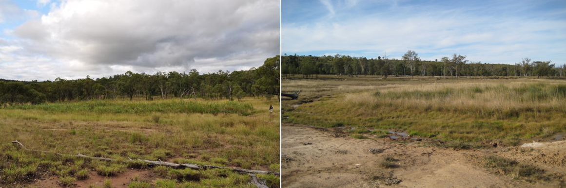 The wetlands fluctuate in extent and area and will be altered physically by bank erosion during flood events. They maintain free-flowing discharge all year round and are considered semi-permanent features of the landscape. The extent of the wetland area and associated flora appears constrained by the landscape position. However, the spatial distribution of terrestrial vegetation within the wetland varies, potentially reflecting changes in the distribution of saturation within the wetland.