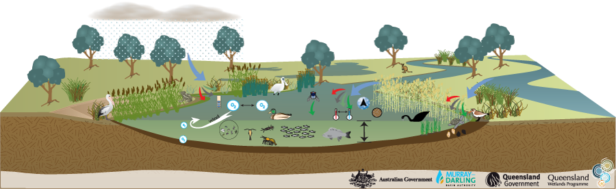 Arid and semi-arid floodplain lakeArid and semi-arid floodplain lake![]() Click on elements of the model or select from the tabs below Last updated: 22 March 2013 This page should be cited as: Department of Environment, Science and Innovation, Queensland (2013) Arid and semi-arid floodplain lake, WetlandInfo website, accessed 8 May 2025. Available at: https://wetlandinfo.des.qld.gov.au/wetlands/ecology/aquatic-ecosystems-natural/lacustrine/arid-floodplain-lake/ |