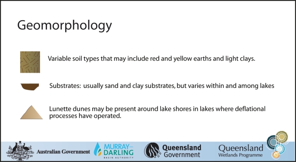 Last updated: 22 March 2013 This page should be cited as: Department of Environment, Science and Innovation, Queensland (2013) Arid and semi-arid non-floodplain lake – Geomorphology, WetlandInfo website, accessed 8 May 2025. Available at: https://wetlandinfo.des.qld.gov.au/wetlands/ecology/aquatic-ecosystems-natural/lacustrine/arid-non-floodplain-lake/geomorphology.html |