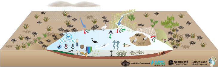 Arid and semi-arid saline lakeArid and semi-arid saline lake![]() Click on elements of the model or select from the tabs below Last updated: 22 March 2013 This page should be cited as: Department of Environment, Science and Innovation, Queensland (2013) Arid and semi-arid saline lake, WetlandInfo website, accessed 8 May 2025. Available at: https://wetlandinfo.des.qld.gov.au/wetlands/ecology/aquatic-ecosystems-natural/lacustrine/arid-saline-lake/ |