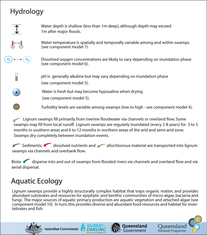 Arid and semi-arid lignum swampArid and semi-arid lignum swamp – Hydrology![]() Click on elements of the model or select from the tabs below