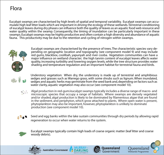 Arid and semi-arid tree swampArid and semi-arid tree swamp – Flora![]() Click on elements of the model or select from the tabs below