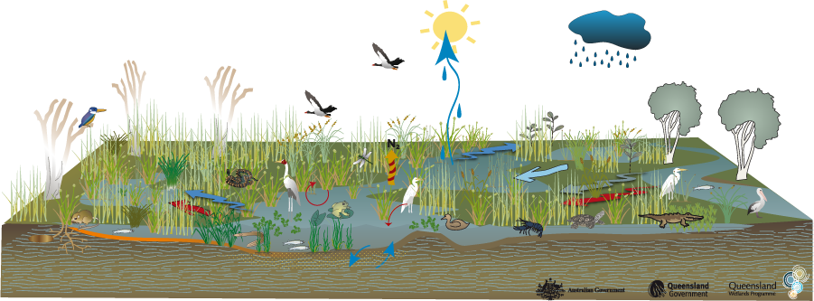 Coastal and subcoastal floodplain grass, sedge, herb swampCoastal and subcoastal floodplain grass, sedge, herb swampClick on elements of the model or select from the tabs below Last updated: 22 March 2013 This page should be cited as: Department of Environment, Science and Innovation, Queensland (2013) Coastal and subcoastal floodplain grass, sedge, herb swamp, WetlandInfo website, accessed 8 May 2025. Available at: https://wetlandinfo.des.qld.gov.au/wetlands/ecology/aquatic-ecosystems-natural/palustrine/floodplain-grass-sedge-herb-swamp/ |