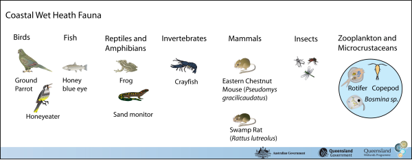 Coastal and subcoastal floodplain wet heath swampCoastal and subcoastal floodplain wet heath swamp – FaunaClick on elements of the model or select from the tabs below