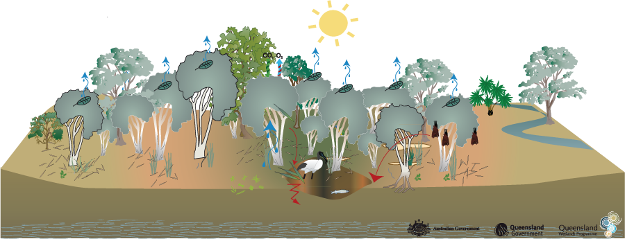 Coastal and subcoastal floodplain tree swamp–Melaleuca spp. and Eucalyptus spp.Coastal and subcoastal floodplain tree swamp–Melaleuca spp. and Eucalyptus spp.Click on elements of the model or select from the tabs below Last updated: 22 March 2013 This page should be cited as: Department of Environment, Science and Innovation, Queensland (2013) Coastal and subcoastal floodplain tree swamp–Melaleuca spp. and Eucalyptus spp., WetlandInfo website, accessed 8 May 2025. Available at: https://wetlandinfo.des.qld.gov.au/wetlands/ecology/aquatic-ecosystems-natural/palustrine/floodplain-tree-swamp/ |