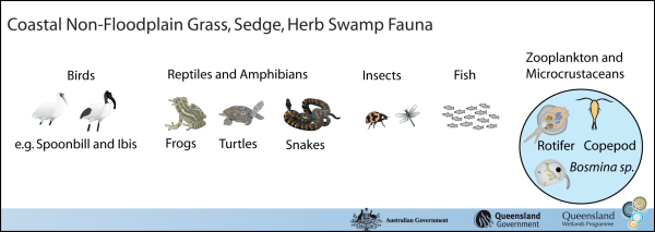 Coastal and subcoastal non-floodplain grass sedge and herb swampCoastal and subcoastal non-floodplain grass sedge and herb swamp – FaunaClick on elements of the model or select from the tabs below Birds