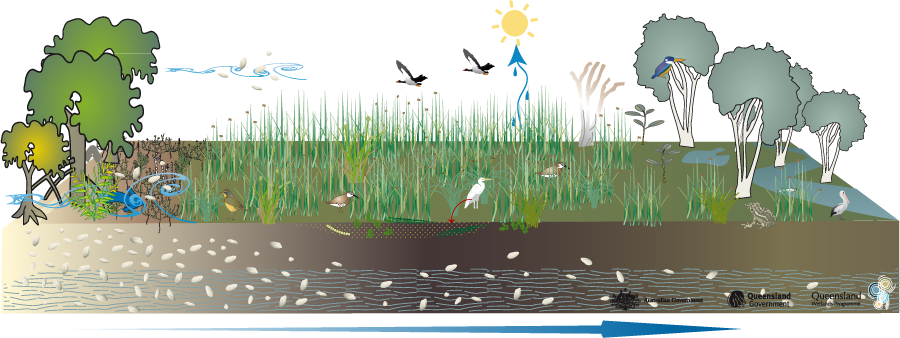 Coastal and subcoastal saline swampCoastal and subcoastal saline swampClick on elements of the model or select from the tabs below Last updated: 22 March 2013 This page should be cited as: Department of Environment, Science and Innovation, Queensland (2013) Coastal and subcoastal saline swamp, WetlandInfo website, accessed 8 May 2025. Available at: https://wetlandinfo.des.qld.gov.au/wetlands/ecology/aquatic-ecosystems-natural/palustrine/saline-swamp/ |