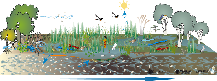 Coastal and subcoastal saline swampCoastal and subcoastal saline swampClick on elements of the model or select from the tabs below Last updated: 22 March 2013 This page should be cited as: Department of Environment, Science and Innovation, Queensland (2013) Coastal and subcoastal saline swamp, WetlandInfo website, accessed 8 May 2025. Available at: https://wetlandinfo.des.qld.gov.au/wetlands/ecology/aquatic-ecosystems-natural/palustrine/saline-swamp/ |