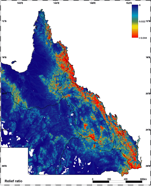Last updated: 22 March 2013 This page should be cited as: Department of Environment, Science and Innovation, Queensland (2013) Relief Ratio, WetlandInfo website, accessed 8 May 2025. Available at: https://wetlandinfo.des.qld.gov.au/wetlands/ecology/aquatic-ecosystems-natural/riverine/freshwater-biogeo/background/qld-relief-ratio.html |