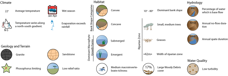 Central Freshwater Biogeographic ProvinceCentral Freshwater Biogeographic Province![]() ![]() Click on elements of the model or select from the tabs below The Central Freshwater Biogeographic Province (FBP) is largely formed by the Burdekin and Fitzroy drainage basins to the west. Coastal drainage basins to the east include the Ross, Haughton, Don, Proserpine, O’Connell, Pioneer, Plane, Styx, Shoalwater, Waterpark, Curtis Island, Calliope, and Boyne. The FBP incorporates the Central Queensland Coast, Brigalow Belt, Desert Uplands and Einasleigh Uplands vegetation bioregions, and a very small portion of the South Eastern Queensland vegetation bioregion. Last updated: 22 March 2013 This page should be cited as: Department of Environment, Science and Innovation, Queensland (2013) Central Freshwater Biogeographic Province, WetlandInfo website, accessed 8 May 2025. Available at: https://wetlandinfo.des.qld.gov.au/wetlands/ecology/aquatic-ecosystems-natural/riverine/freshwater-biogeo/central/ |