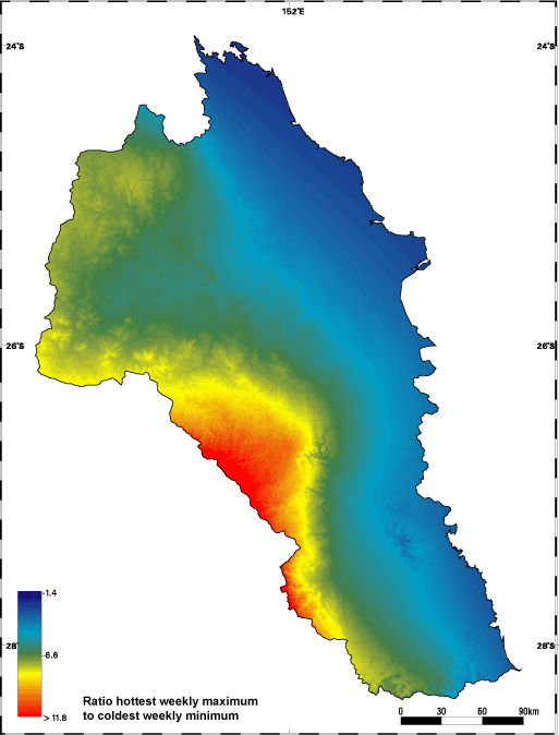 Last updated: 22 March 2013 This page should be cited as: Department of Environment, Science and Innovation, Queensland (2013) South-East Freshwater Biogeographic Province – Temperature maps, WetlandInfo website, accessed 8 May 2025. Available at: https://wetlandinfo.des.qld.gov.au/wetlands/ecology/aquatic-ecosystems-natural/riverine/freshwater-biogeo/south-east/climate/temperature-maps.html |