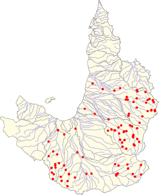 Gauging stations used in calculation of the Western Cape and Gulf FBP hydrological features