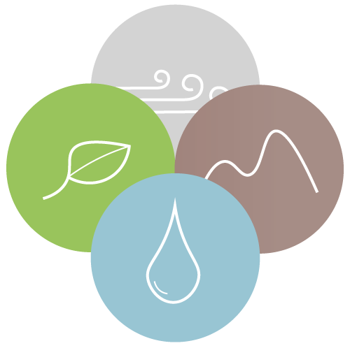 The hydrosphere contains all the water on Earth, which covers about 71% of the Earth’s surface. Water is essential to all life, and is a major component of weather patterns, and can impact many cycles and processes. The hydrosphere contains the water cycle, where water is in constant motion and change (including water evaporating from the oceans, moving through the atmosphere and percolating through the substrate via groundwater). Water movement creates hydrodynamic energy that is involved in processes, does work, and is involved in chemical processes. For example, water also modifies the Earth’s surface through processes such as erosion that weathers rock material and is involved in soil-forming processes[1]. The atmosphere is the dynamic envelope of gases on the Earth’s surface that is constantly interacting with the Earth’s components. The atmosphere is made of gases (78% nitrogen, 21% oxygen and smaller amounts of other gases, such as carbon dioxide), and water vapour. The atmosphere is essential to many life processes, such as photosynthesis, where plants extract carbon dioxide from the atmosphere and expel oxygen[1]. The geosphere includes the continental and oceanic crust and all other layers of the Earth's interior. This includes all rocks, sediments and soils, surface landforms and the processes that shape the Earth's surface. The biosphere includes all life on Earth. The biosphere also consists of life living on or in the Earth's geosphere and hydrosphere, including humans and all organic matter that has not yet decomposed[1]. The biosphere may be discontinuous and irregular, yet it interacts with, and is connected to, all other spheres within which it is intricately interwoven. Life exists within specific environmental settings which are a result of the mix of components on processes that form habitats.