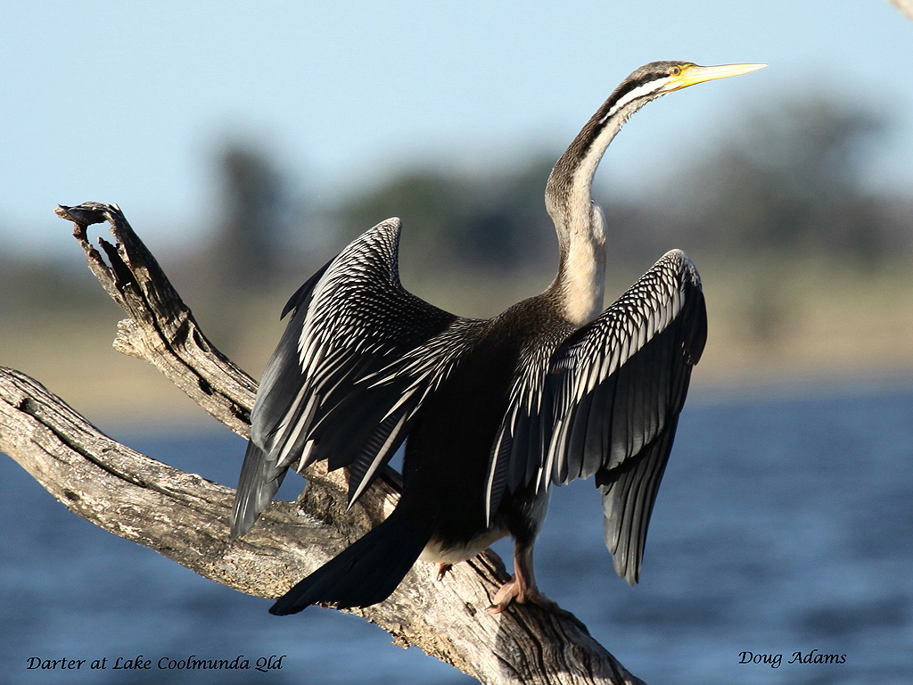 This section provides information on how to identify certain species of waterbirds. AnseriformesSwans, geese and ducksIdentification of ducks, geese and swans can be complicated because these waterbirds often occur in large numbers and in mixed species flocks. When in flight, different species of ducks can be identified by their distinctive wing-patterns. The three species of whistling-duck occurring in Queensland can be identified by their flank feathers and calls. Freckled duck, female blue-billed duck and female musk duck have dark grey plumage with fine pale flecks but can be separated by bill shape and behaviour (blue-billed duck and musk duck commonly dive). Hardheads have bold white bands in their wings. Wing pattern also helps to separate the two species of pygmy-goose (cotton pygmy goose and green pygmy goose) and to distinguish Pacific black duck, grey teal and female Australasian shoveler. Grey teal and female chestnut teal are particularly difficult to separate. Subtle differences in head colour are important, and without good views it may not be possible to identify individual species. PodicipediformesGrebesThe Australasian grebe and the hoary-headed grebe can be difficult to identify in non-breeding plumage. Fine details of facial and hind-neck plumage and colour of the flanks are key features. The great crested grebe is more easily identified due to it's larger size and distinctive plumage. PelicaniformsCormorants and Australasian dartersCormorants and Australasian darter are black and white birds that can be identified by colour of bill and face, and shape of bill (cormorants have hooked bills; darters have dagger-like bills). Pied cormorant, little pied cormorant and female darter are often misidentified by observers. CiconiiformesHerons and related speciesHerons and related species are some of the largest of our waterbirds and some of the easiest to identify. Plumage, proportions, colour and the use of habitats is sufficient to identify most species. The five species of white egret are generally the most difficult to distinguish. Success depends on careful observation of proportions, such as neck length, and the seasonal variability in colours of the bill, legs and bare facial skin and, when breeding, the arrangement of plume-feathers. Egrets are commonly not identified to species level in aerial surveys. Others requiring extra care in identifying include: