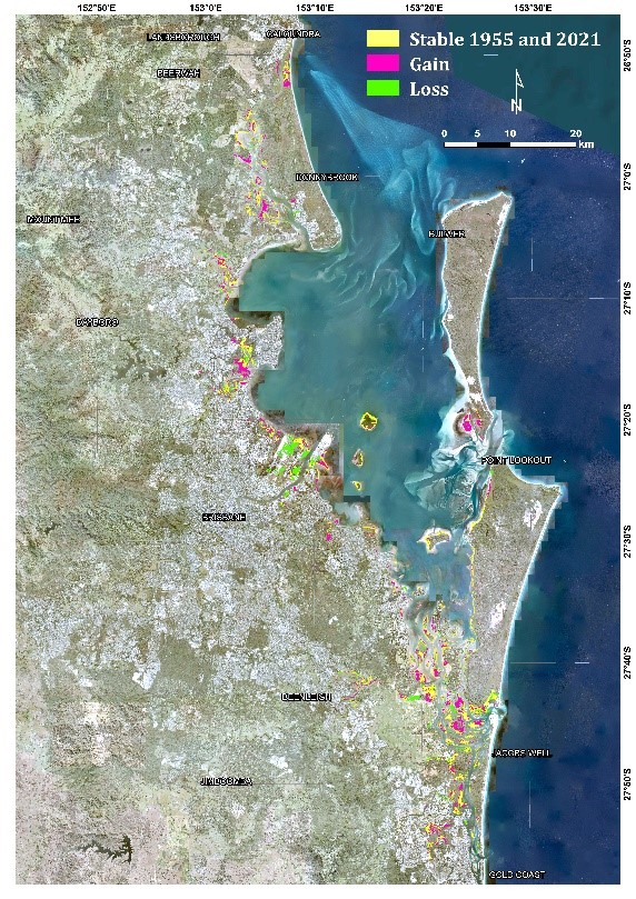 - ^ a b Accad, A, Li, J, Dowling, R & Guymer, G (2016), Mangrove and associated communities of Moreton Bay, Queensland, Australia: change in extent 1955-1997-2012. [online], Queensland Herbarium, Brisbane. Available at: https://www.publications.qld.gov.au/dataset/mangrove-and-associated-communities-of-moreton-bay.