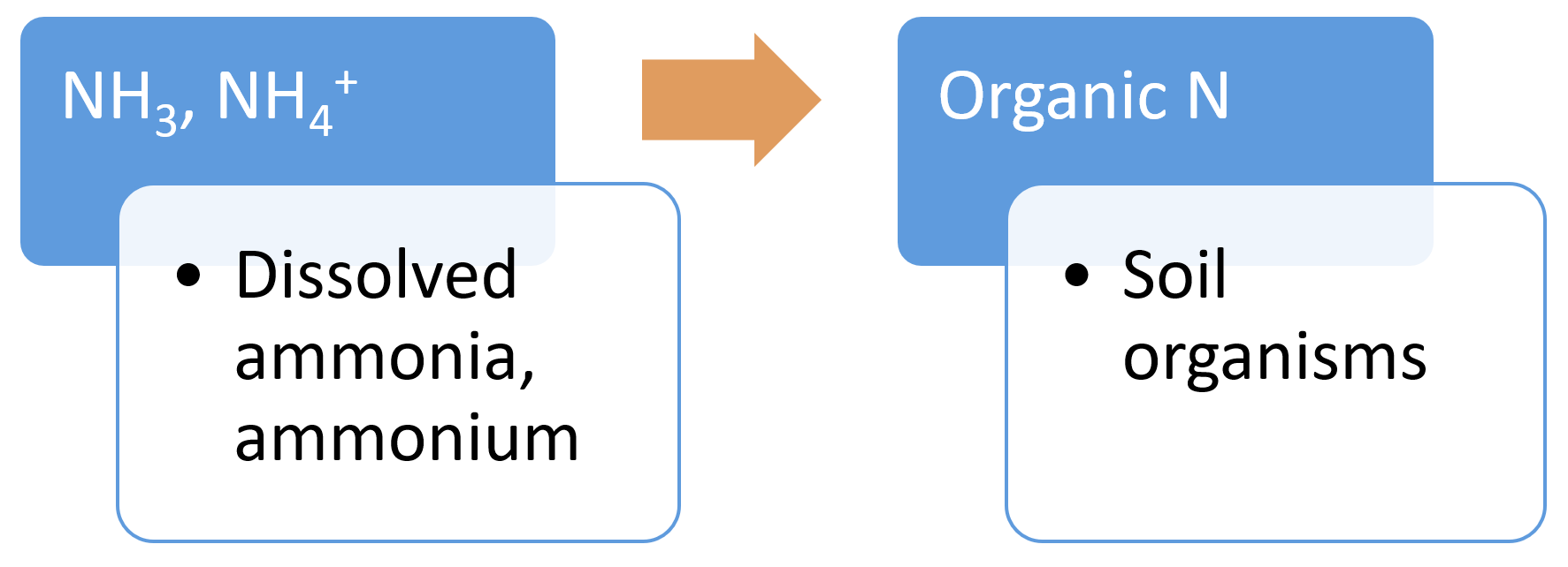 Immobilisation (nitrogen)Nitrogen immobilisation (assimilation) is to the long term storage of nitrogen in soil organic matter[13]. Nitrate and ammonium become unavailable to crops or other vegetation via immobilisation. Nitrogen immobilisation is the reverse of mineralisation.