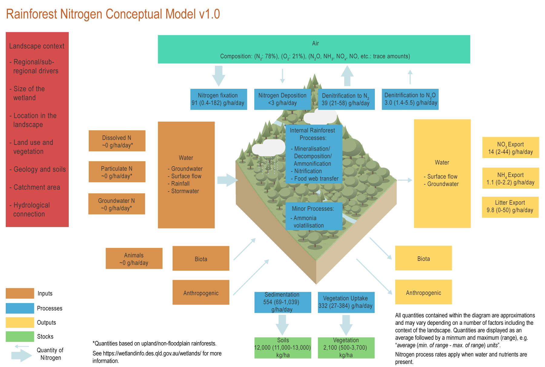 Department of Environment, Science and Innovation, Queensland (2021) Rainforest, WetlandInfo website, accessed 8 May 2025. Available at: https://wetlandinfo.des.qld.gov.au/wetlands/ecology/processes-systems/nitrogen-concept-model/rainforest/