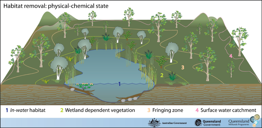 Department of Environment, Science and Innovation, Queensland (2013) Habitat removal – State, WetlandInfo website, accessed 8 May 2025. Available at: https://wetlandinfo.des.qld.gov.au/wetlands/management/pressures/lacustrine-palustrine-threats/habitat-removal/state.html
