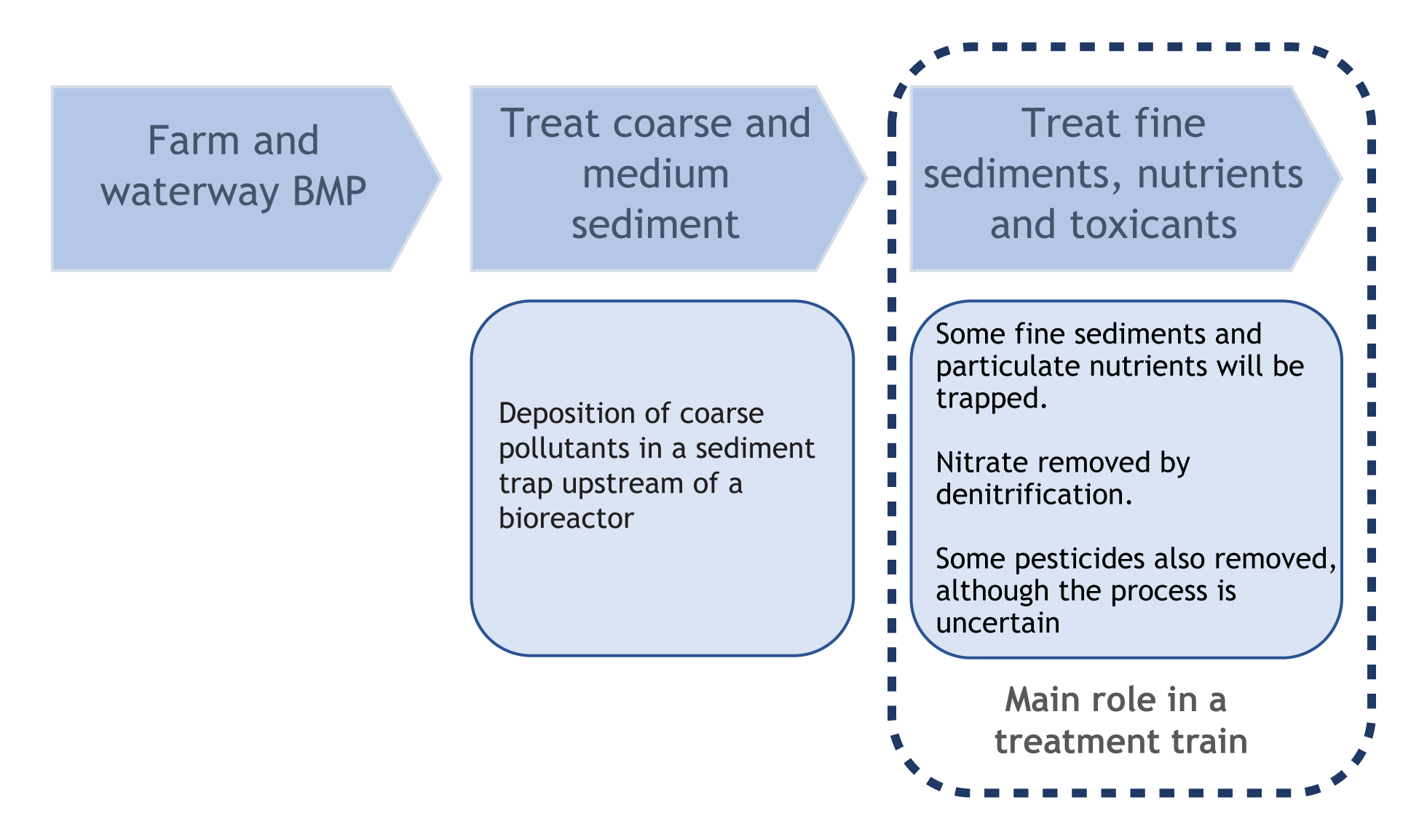 In addition to nitrate, bioreactors have the potential to reduce the concentration of some pesticides[6], although the main mechanism for this reduction is uncertain.