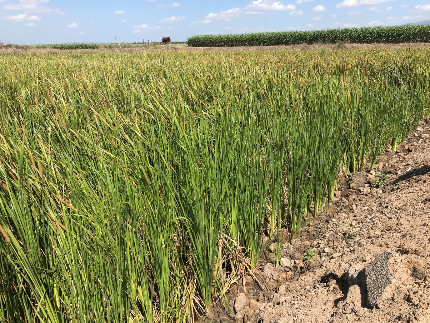Earthworks should occur during the dry season to minimise the risk of sediment loss. Drainage should bypass the construction site until construction is complete and then be controlled to minimise erosion of the bare soil. Some wetlands may need a compacted clay base to prevent losses to groundwater. Topsoil should be stripped, stockpiled, and replaced as a growing media in the macrophyte zone. EstablishmentTreatment wetlands require large numbers of new plants, primarily reeds and sedges for the macrophyte zone. These can be costly and must be budgeted upfront as dense macrophytes are critical to the effective treatment of water. Plants should be sourced as early as possible at the start of the project to ensure availability (preferably with local provenance). Local guidelines for plant selections should be used where available. Wetland plant guides are available for the Wet Tropics, Burdekin and Mackay Whitsundays regions (See Plant Guides). Natural vegetated systems such as waterways, wetlands and riparian zones can be used as a regional reference from which to create a list of suitable species. Alternatively, locally occurring species can be encouraged to establish in the new treatment wetland, particularly if earthworks were not extensive and vegetation was retained on site (i.e. wetland was created through hydrological modifications). If seed can be obtained, it may be more cost-effective to establish vegetation via seeding. Before planting soil testing should be completed to ensure suitability for plant growth. Vegetation should ideally be planted in bands of the same species running across/perpendicular to the water flow to promote uniform water flow through the macrophyte zone (Figure 10).
