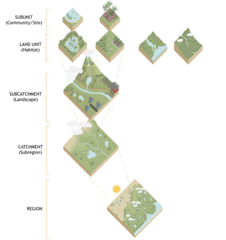 Hydrology includes the properties of the water and its distribution and movement between the land, groundwater and atmosphere. Information in the following section explains how hydrology operates at a range of scales (such as catchment, regional or global) and from different perspectives (e.g. focusing on a particular wetland, a river catchment or a groundwater aquifer).