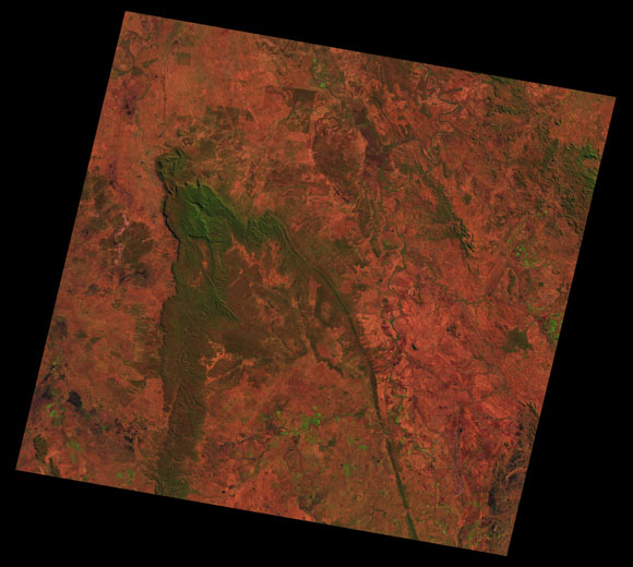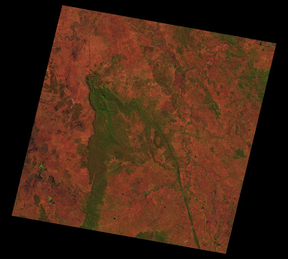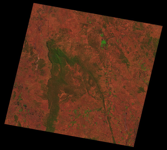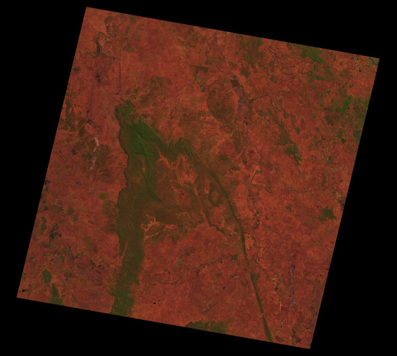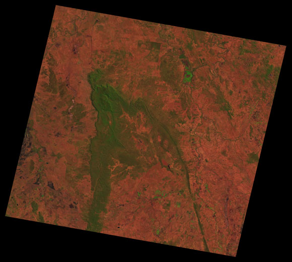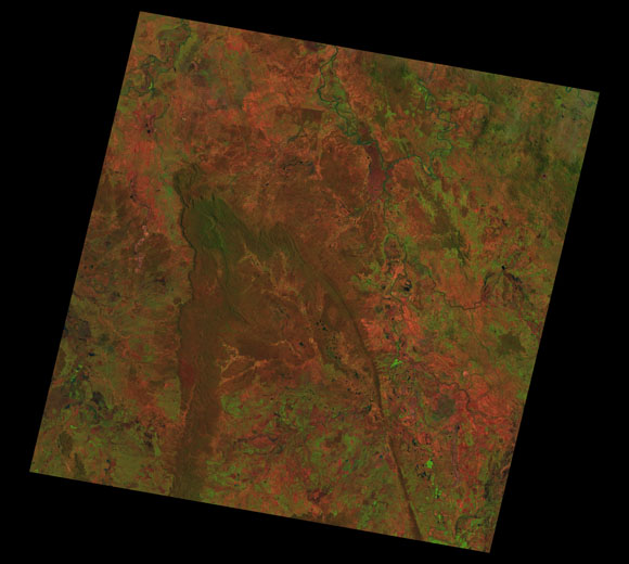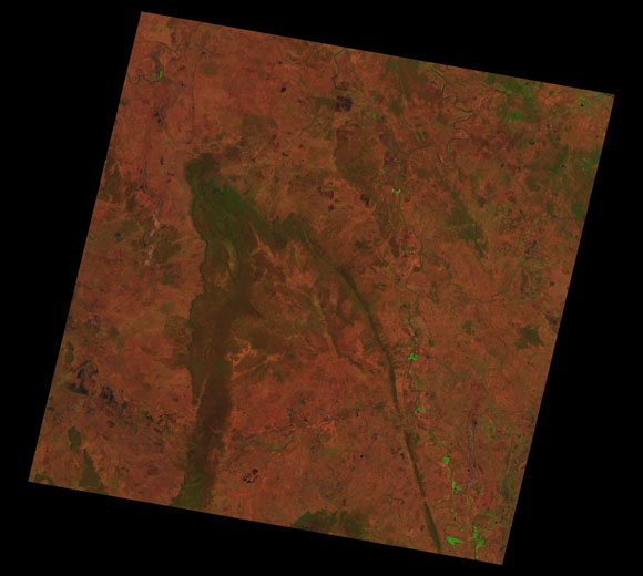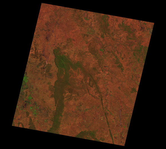 Blackwater Landsat SceneWRS path/row: 92/76-77 Images are colour-mapped to enhance the contrast of water bodies (Shortwave→Red, Near-infrared→Green, Green→Blue) Copyright Commonwealth of Australia - Geoscience Australia. Imagery post-processed by DETSI. This page should be cited as: Department of Environment, Science and Innovation, Queensland (2013) Blackwater Landsat Scene, WetlandInfo website, accessed 8 May 2025. Available at: https://wetlandinfo.des.qld.gov.au/wetlands/resources/tools/hydro-climate/scene/blac/ |