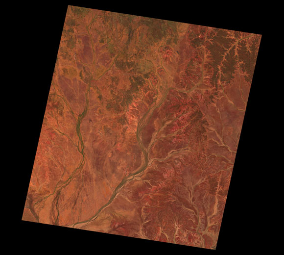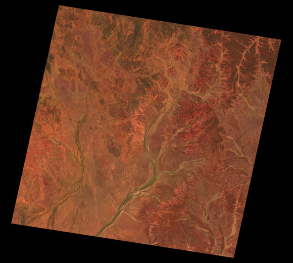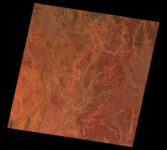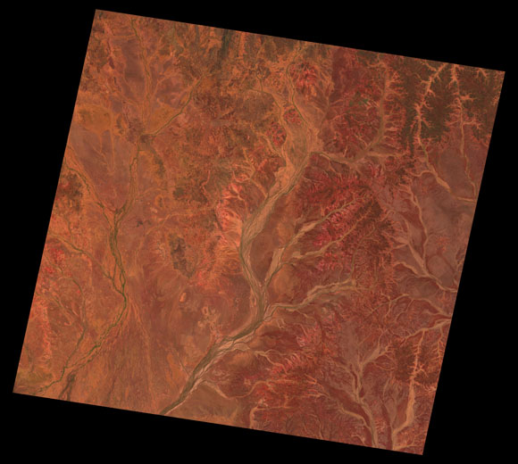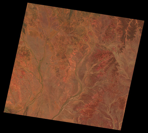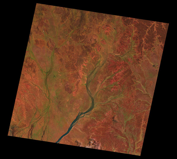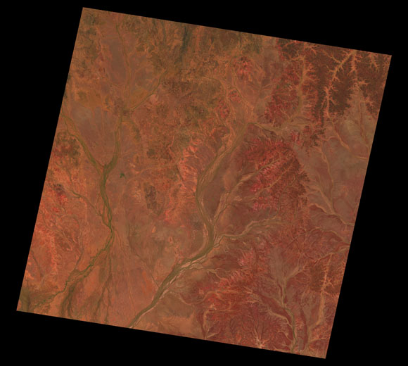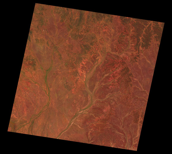 Boulia Landsat SceneImages are colour-mapped to enhance the contrast of water bodies (Shortwave→Red, Near-infrared→Green, Green→Blue) Copyright Commonwealth of Australia - Geoscience Australia. Imagery post-processed by DETSI. This page should be cited as: Department of Environment, Science and Innovation, Queensland (2013) Boulia Landsat Scene, WetlandInfo website, accessed 8 May 2025. Available at: https://wetlandinfo.des.qld.gov.au/wetlands/resources/tools/hydro-climate/scene/boul/ |