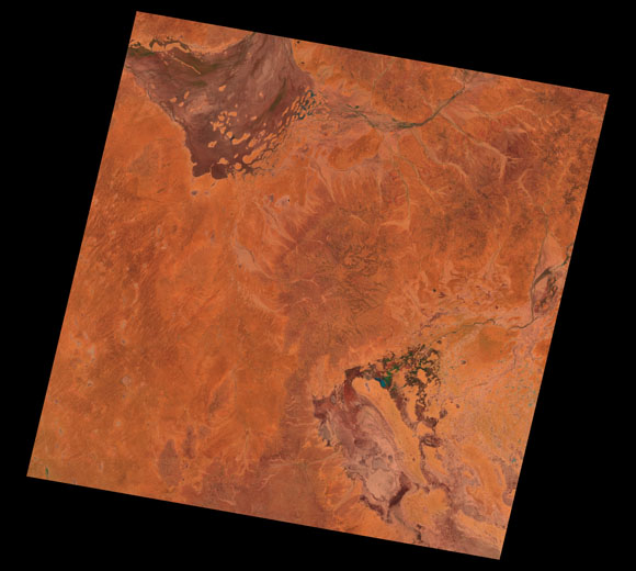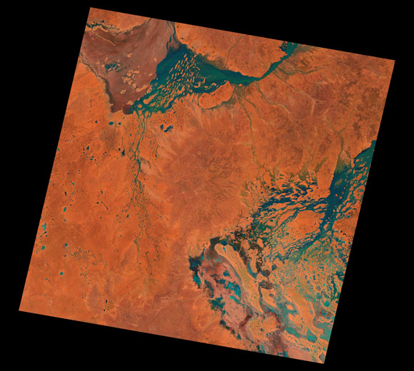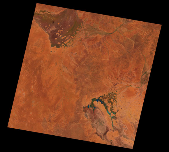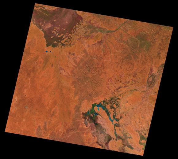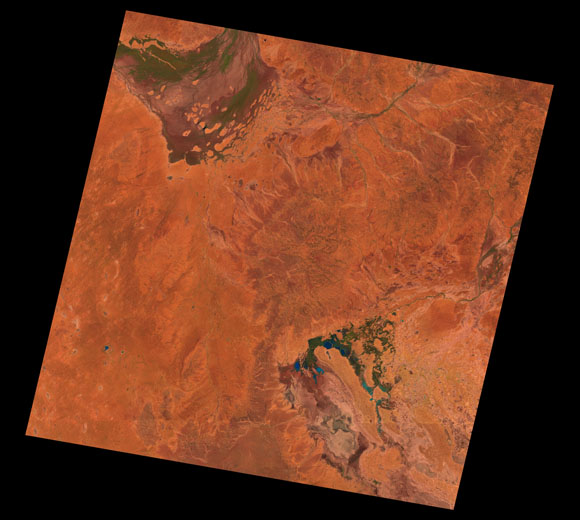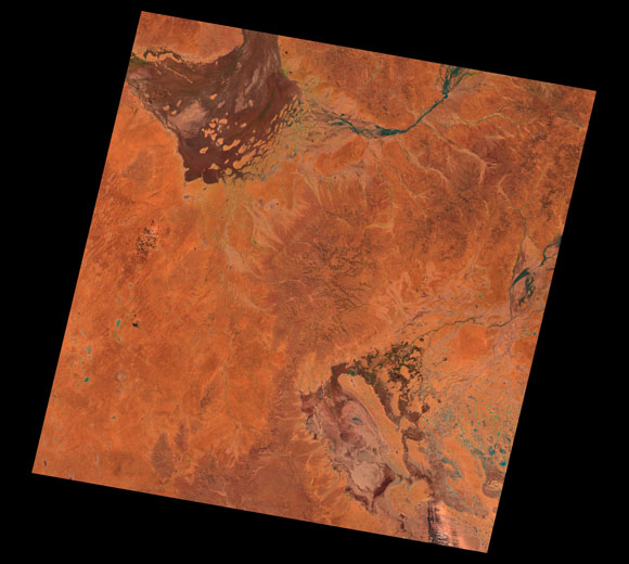 Bransby Landsat SceneWRS path/row: 96/79-80 Images are colour-mapped to enhance the contrast of water bodies (Shortwave→Red, Near-infrared→Green, Green→Blue) Copyright Commonwealth of Australia - Geoscience Australia. Imagery post-processed by DETSI. This page should be cited as: Department of Environment, Science and Innovation, Queensland (2013) Bransby Landsat Scene, WetlandInfo website, accessed 8 May 2025. Available at: https://wetlandinfo.des.qld.gov.au/wetlands/resources/tools/hydro-climate/scene/bran/ |