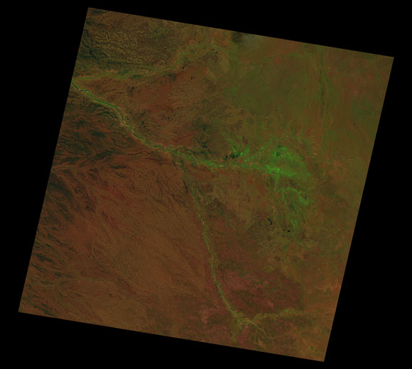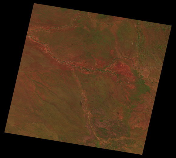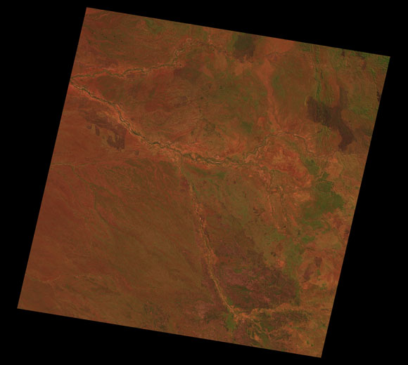 Bulimba Landsat SceneWRS path/row: 97/71-72 Images are colour-mapped to enhance the contrast of water bodies (Shortwave→Red, Near-infrared→Green, Green→Blue) Copyright Commonwealth of Australia - Geoscience Australia. Imagery post-processed by DETSI. This page should be cited as: Department of Environment, Science and Innovation, Queensland (2013) Bulimba Landsat Scene, WetlandInfo website, accessed 8 May 2025. Available at: https://wetlandinfo.des.qld.gov.au/wetlands/resources/tools/hydro-climate/scene/buli/ |