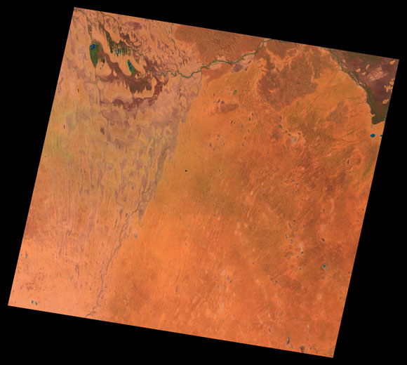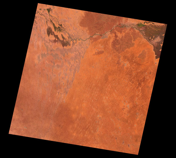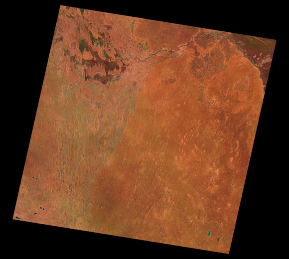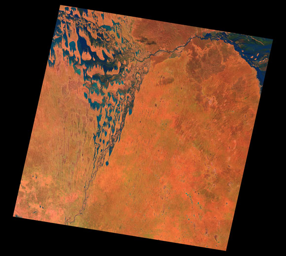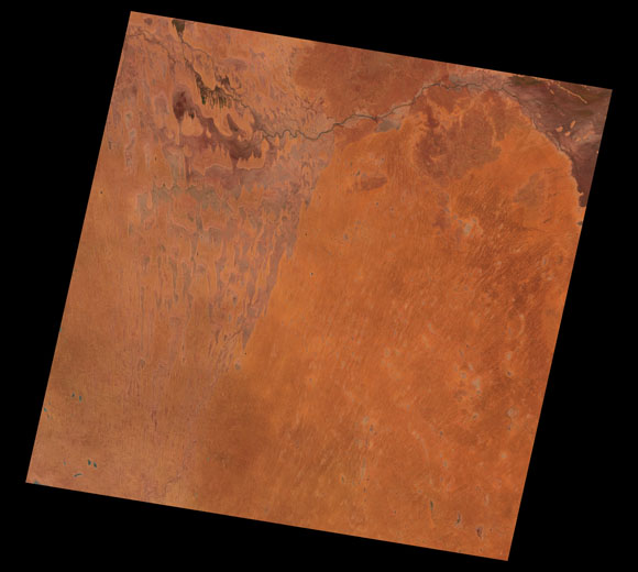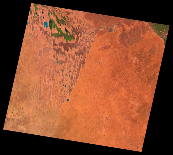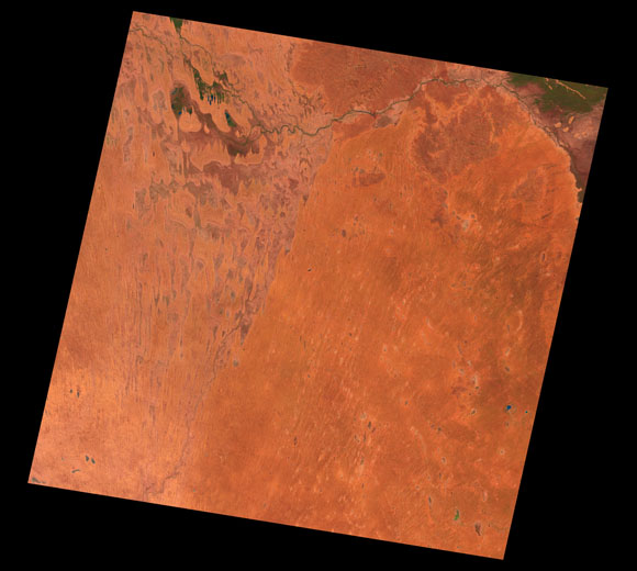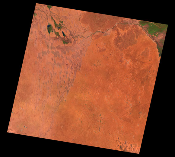 Cameron Corner Landsat SceneImages are colour-mapped to enhance the contrast of water bodies (Shortwave→Red, Near-infrared→Green, Green→Blue) Copyright Commonwealth of Australia - Geoscience Australia. Imagery post-processed by DETSI. This page should be cited as: Department of Environment, Science and Innovation, Queensland (2013) Cameron Corner Landsat Scene, WetlandInfo website, accessed 8 May 2025. Available at: https://wetlandinfo.des.qld.gov.au/wetlands/resources/tools/hydro-climate/scene/came/ |