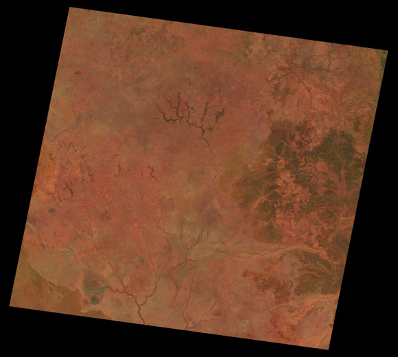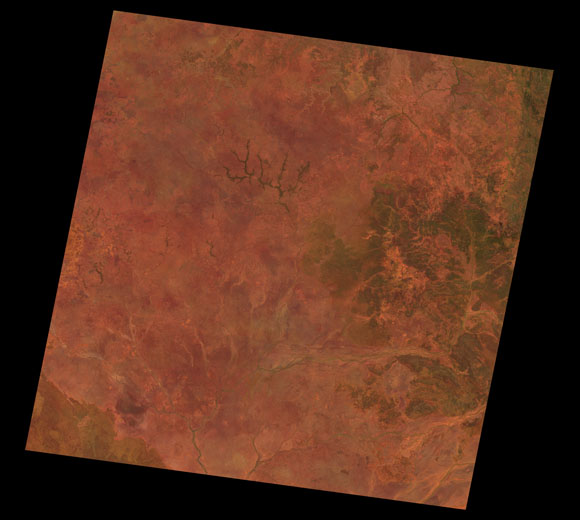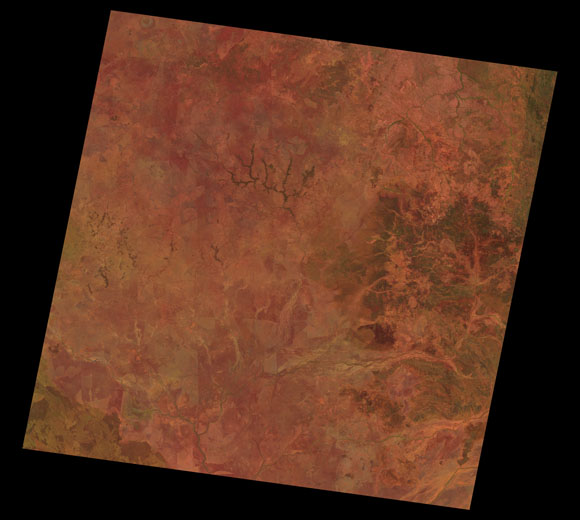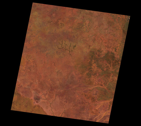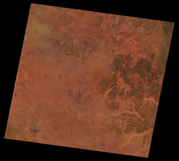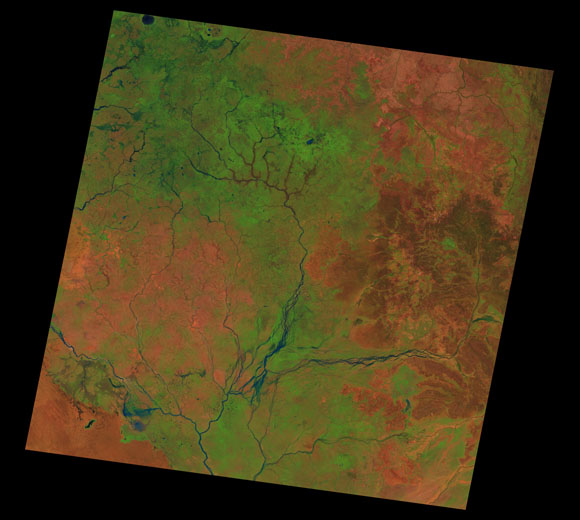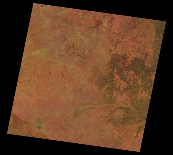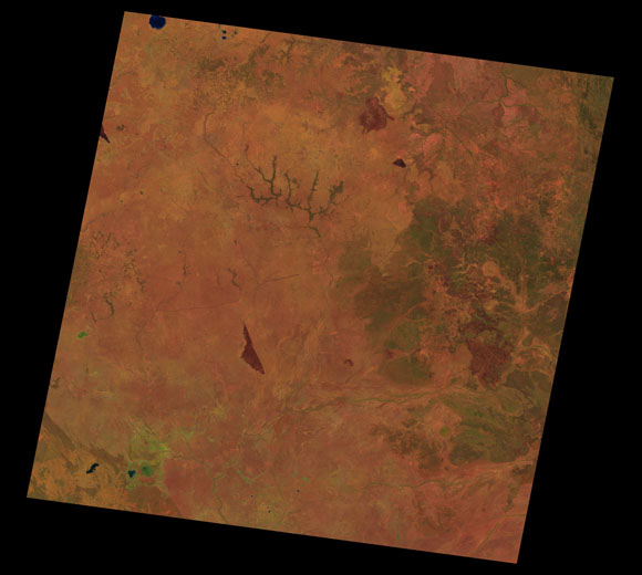 Camooweal Landsat SceneWRS path/row: 100/73-74 Images are colour-mapped to enhance the contrast of water bodies (Shortwave→Red, Near-infrared→Green, Green→Blue) Copyright Commonwealth of Australia - Geoscience Australia. Imagery post-processed by DETSI. This page should be cited as: Department of Environment, Science and Innovation, Queensland (2013) Camooweal Landsat Scene, WetlandInfo website, accessed 8 May 2025. Available at: https://wetlandinfo.des.qld.gov.au/wetlands/resources/tools/hydro-climate/scene/camo/ |