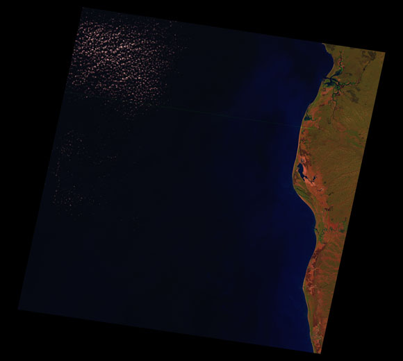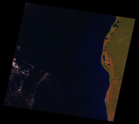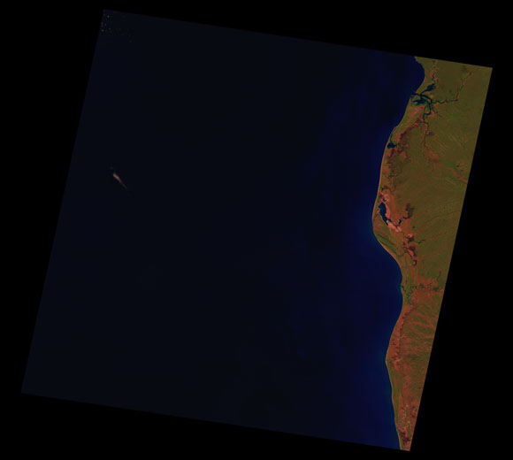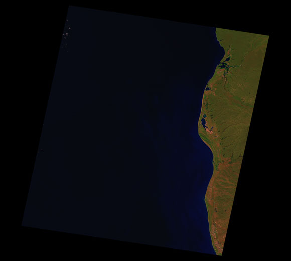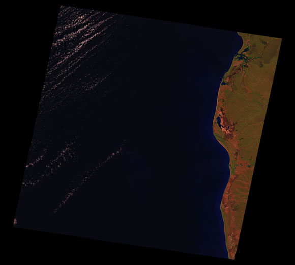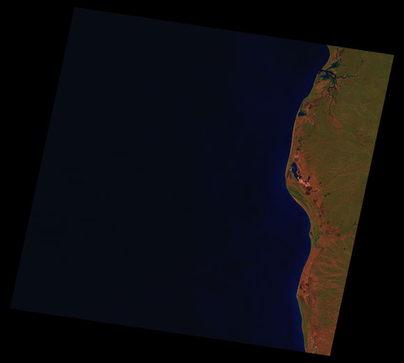Cape Keerweer Landsat SceneWRS path/row: 99/69-70 Images are colour-mapped to enhance the contrast of water bodies (Shortwave→Red, Near-infrared→Green, Green→Blue) Copyright Commonwealth of Australia - Geoscience Australia. Imagery post-processed by DETSI. This page should be cited as: Department of Environment, Science and Innovation, Queensland (2013) Cape Keerweer Landsat Scene, WetlandInfo website, accessed 8 May 2025. Available at: https://wetlandinfo.des.qld.gov.au/wetlands/resources/tools/hydro-climate/scene/capk/ |