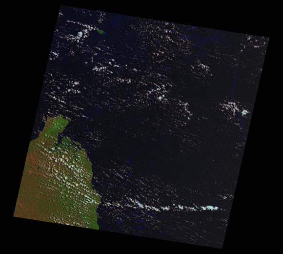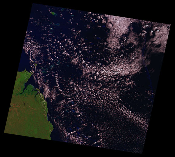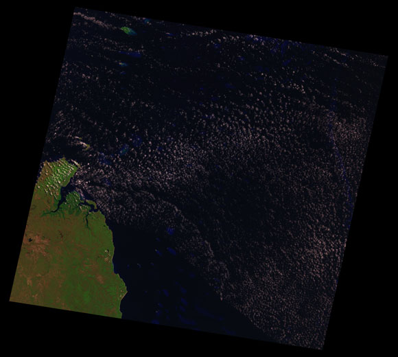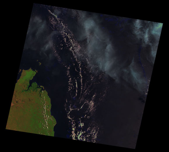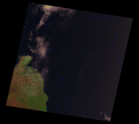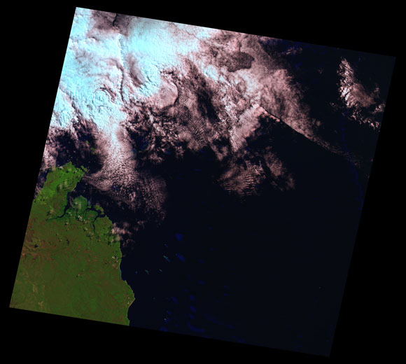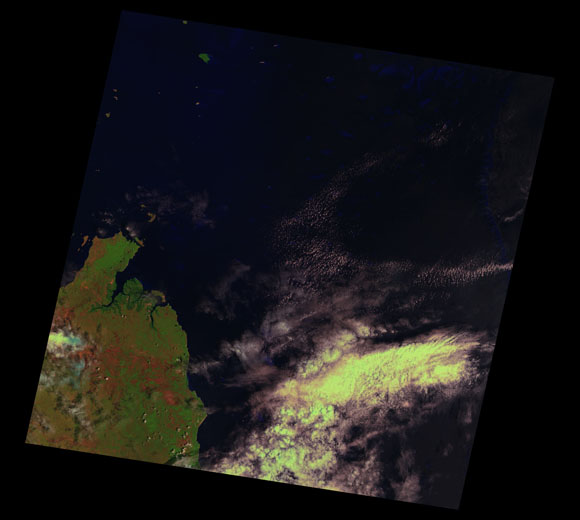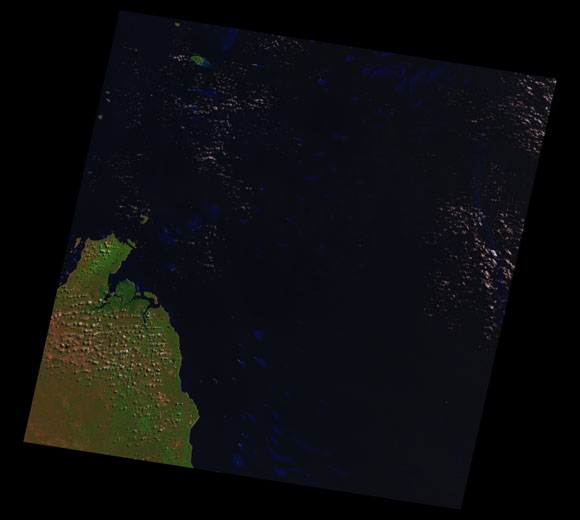 Cape York Landsat SceneImages are colour-mapped to enhance the contrast of water bodies (Shortwave→Red, Near-infrared→Green, Green→Blue) Copyright Commonwealth of Australia - Geoscience Australia. Imagery post-processed by DETSI. This page should be cited as: Department of Environment, Science and Innovation, Queensland (2013) Cape York Landsat Scene, WetlandInfo website, accessed 8 May 2025. Available at: https://wetlandinfo.des.qld.gov.au/wetlands/resources/tools/hydro-climate/scene/capy/ |