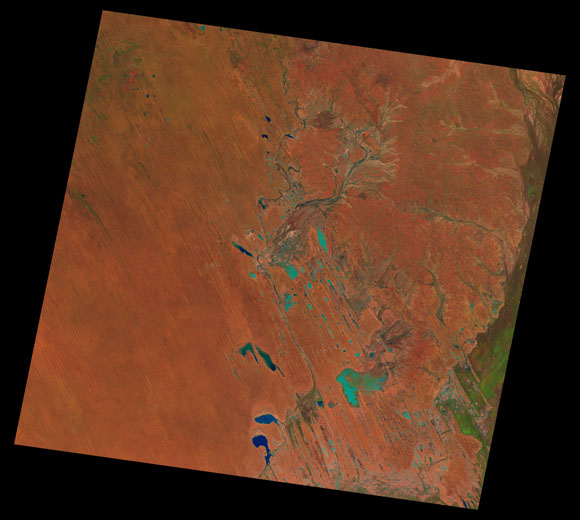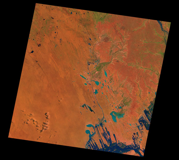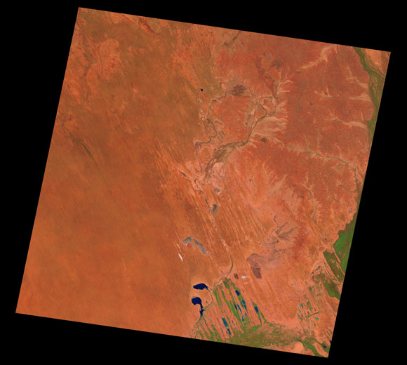 Carlo Landsat SceneWRS path/row: 99/76-77 Images are colour-mapped to enhance the contrast of water bodies (Shortwave→Red, Near-infrared→Green, Green→Blue) Copyright Commonwealth of Australia - Geoscience Australia. Imagery post-processed by DETSI. This page should be cited as: Department of Environment, Science and Innovation, Queensland (2013) Carlo Landsat Scene, WetlandInfo website, accessed 8 May 2025. Available at: https://wetlandinfo.des.qld.gov.au/wetlands/resources/tools/hydro-climate/scene/carl/ |
