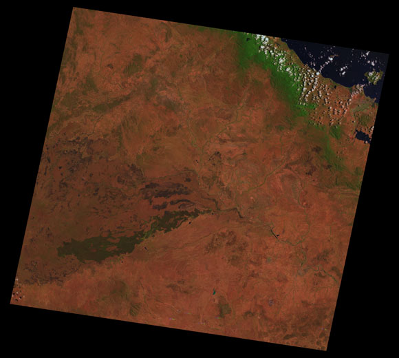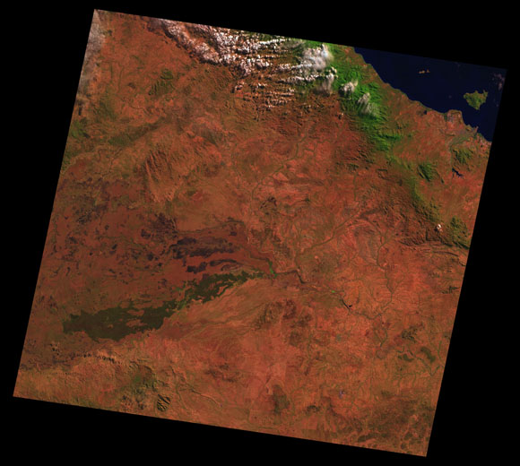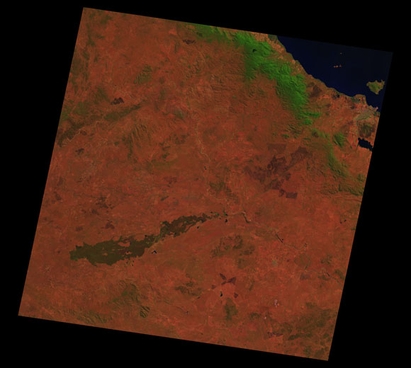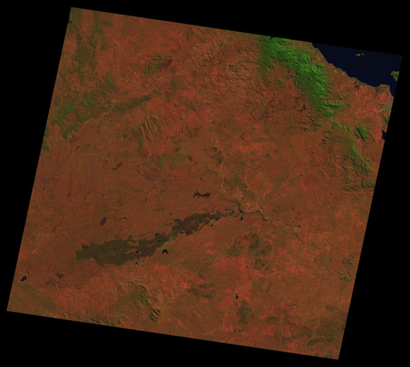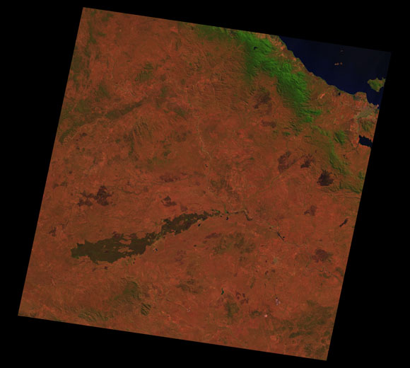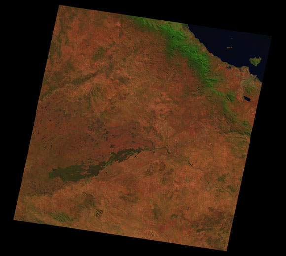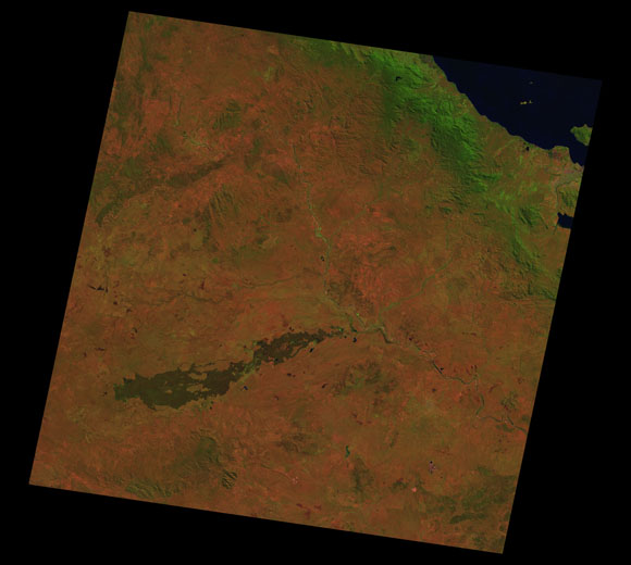 Charters Towers Landsat SceneImages are colour-mapped to enhance the contrast of water bodies (Shortwave→Red, Near-infrared→Green, Green→Blue) Copyright Commonwealth of Australia - Geoscience Australia. Imagery post-processed by DETSI. This page should be cited as: Department of Environment, Science and Innovation, Queensland (2013) Charters Towers Landsat Scene, WetlandInfo website, accessed 8 May 2025. Available at: https://wetlandinfo.des.qld.gov.au/wetlands/resources/tools/hydro-climate/scene/chat/ |