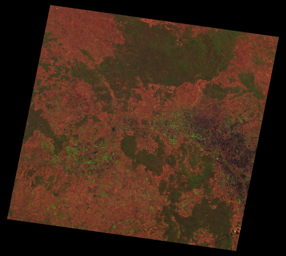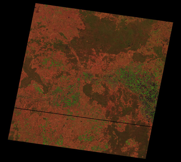 Chinchilla Landsat SceneWRS path/row: 91/78-79 Images are colour-mapped to enhance the contrast of water bodies (Shortwave→Red, Near-infrared→Green, Green→Blue) Copyright Commonwealth of Australia - Geoscience Australia. Imagery post-processed by DETSI. This page should be cited as: Department of Environment, Science and Innovation, Queensland (2013) Chinchilla Landsat Scene, WetlandInfo website, accessed 8 May 2025. Available at: https://wetlandinfo.des.qld.gov.au/wetlands/resources/tools/hydro-climate/scene/chin/ |