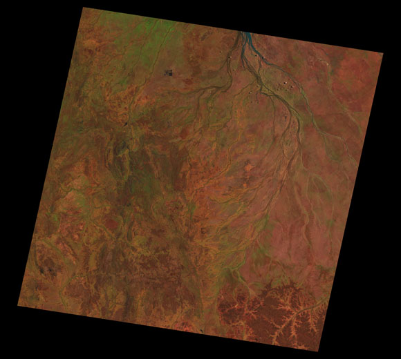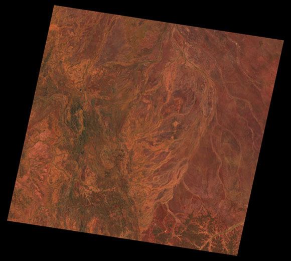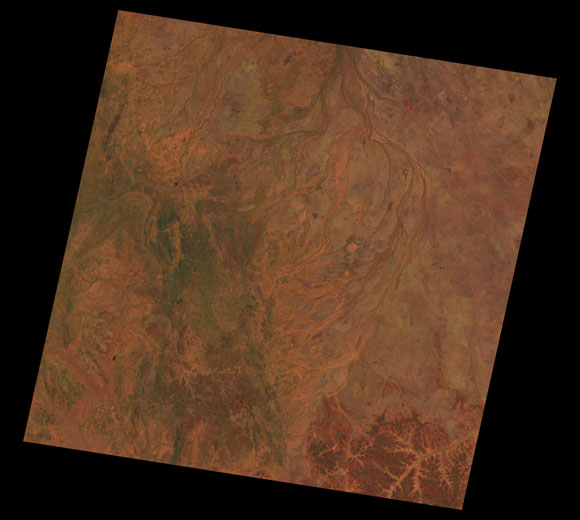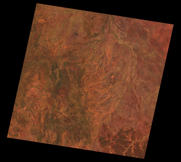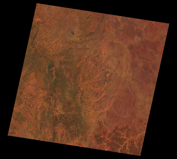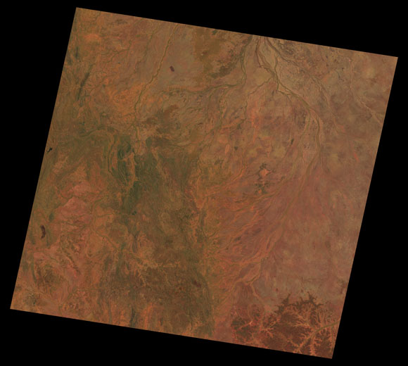 Cloncurry Landsat SceneWRS path/row: 98/74-75 Images are colour-mapped to enhance the contrast of water bodies (Shortwave→Red, Near-infrared→Green, Green→Blue) Copyright Commonwealth of Australia - Geoscience Australia. Imagery post-processed by DETSI. This page should be cited as: Department of Environment, Science and Innovation, Queensland (2013) Cloncurry Landsat Scene, WetlandInfo website, accessed 8 May 2025. Available at: https://wetlandinfo.des.qld.gov.au/wetlands/resources/tools/hydro-climate/scene/clon/ |