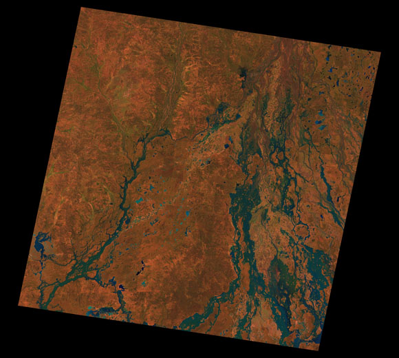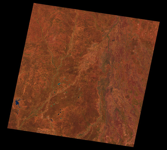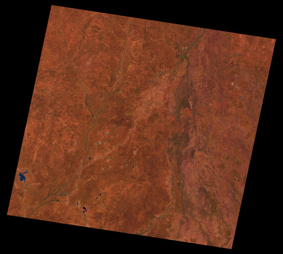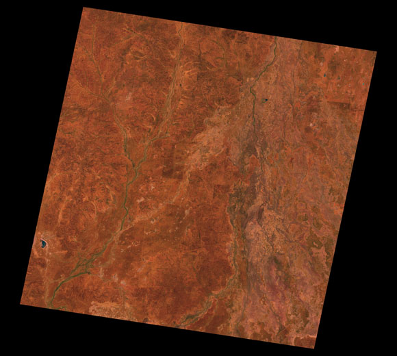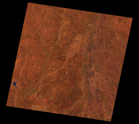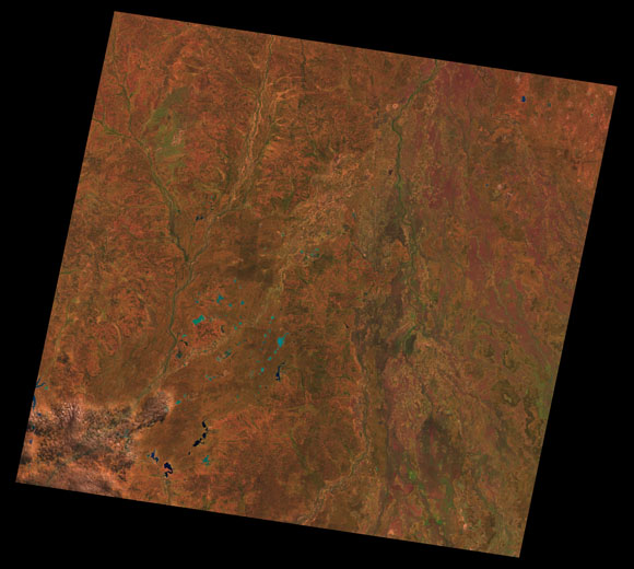 Cunnamulla Landsat SceneWRS path/row: 94/79-80 Images are colour-mapped to enhance the contrast of water bodies (Shortwave→Red, Near-infrared→Green, Green→Blue) Copyright Commonwealth of Australia - Geoscience Australia. Imagery post-processed by DETSI. This page should be cited as: Department of Environment, Science and Innovation, Queensland (2013) Cunnamulla Landsat Scene, WetlandInfo website, accessed 8 May 2025. Available at: https://wetlandinfo.des.qld.gov.au/wetlands/resources/tools/hydro-climate/scene/cunn/ |