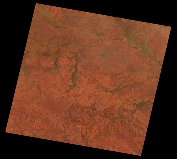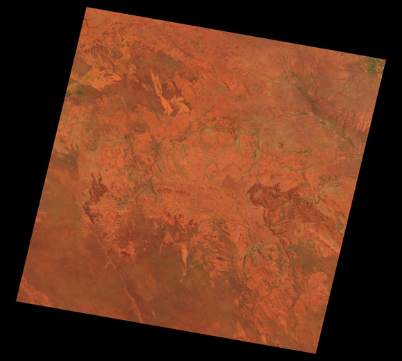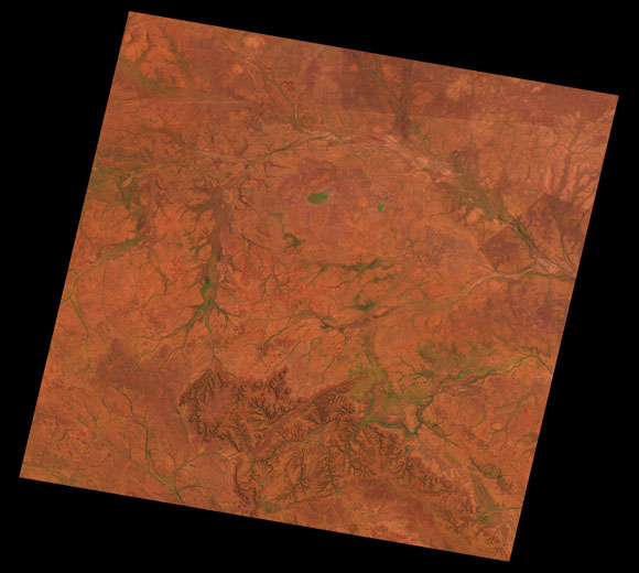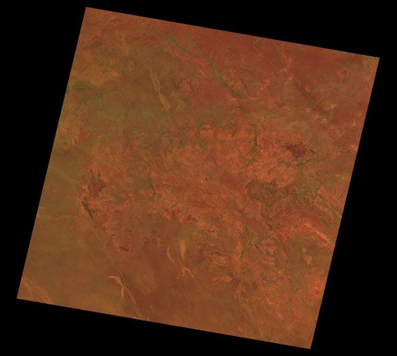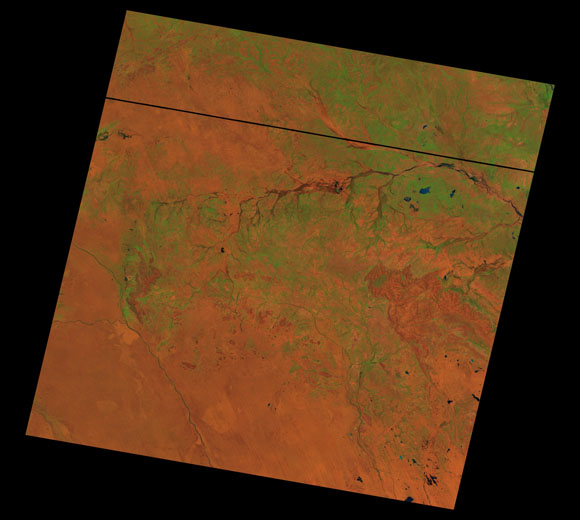 Dynamite Creek Landsat SceneImages are colour-mapped to enhance the contrast of water bodies (Shortwave→Red, Near-infrared→Green, Green→Blue) Copyright Commonwealth of Australia - Geoscience Australia. Imagery post-processed by DETSI. This page should be cited as: Department of Environment, Science and Innovation, Queensland (2013) Dynamite Creek Landsat Scene, WetlandInfo website, accessed 8 May 2025. Available at: https://wetlandinfo.des.qld.gov.au/wetlands/resources/tools/hydro-climate/scene/dyna/ |