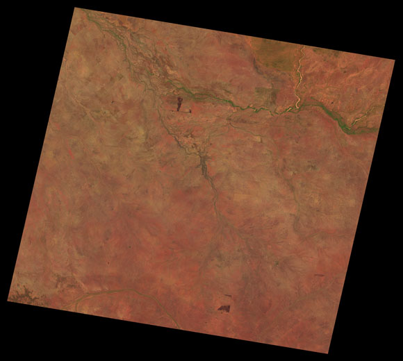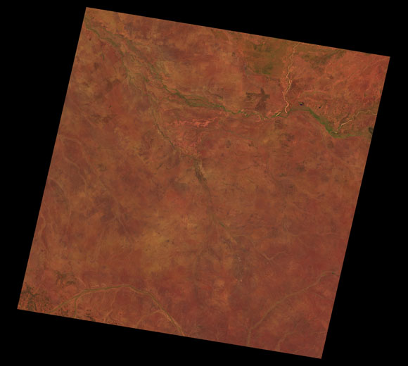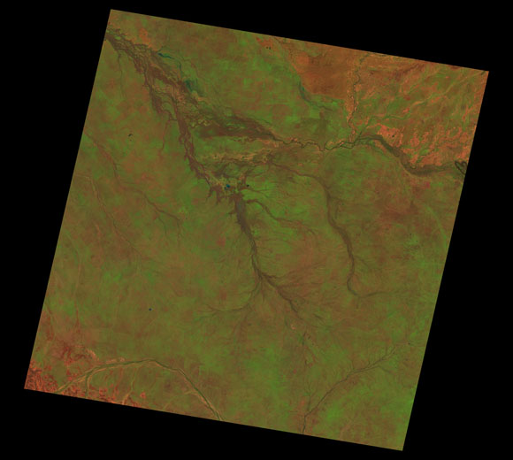 Kynuna Landsat SceneWRS path/row: 97/74-75 Images are colour-mapped to enhance the contrast of water bodies (Shortwave→Red, Near-infrared→Green, Green→Blue) Copyright Commonwealth of Australia - Geoscience Australia. Imagery post-processed by DETSI. This page should be cited as: Department of Environment, Science and Innovation, Queensland (2013) Kynuna Landsat Scene, WetlandInfo website, accessed 8 May 2025. Available at: https://wetlandinfo.des.qld.gov.au/wetlands/resources/tools/hydro-climate/scene/kynu/ |