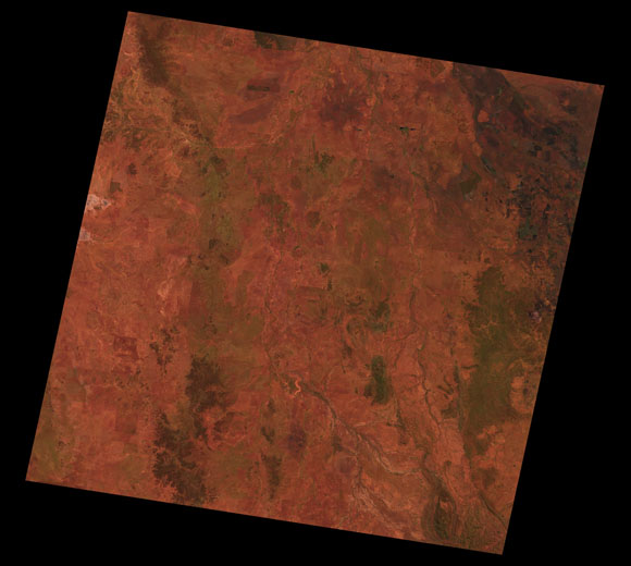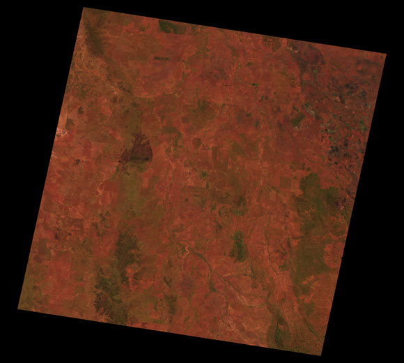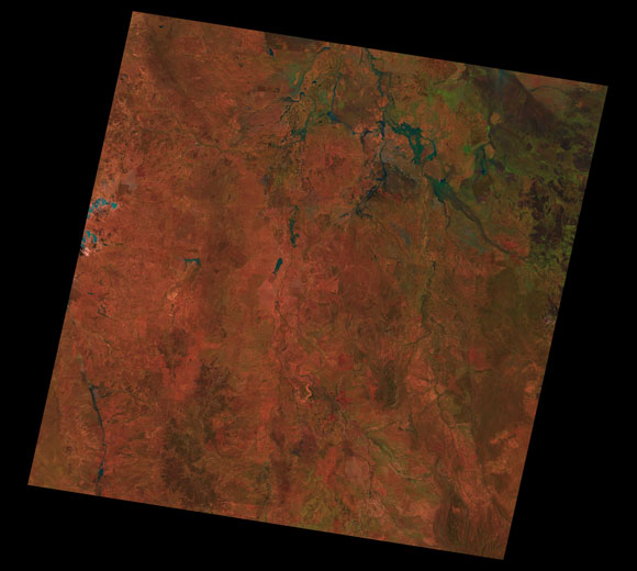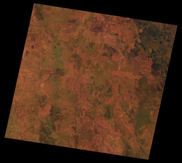 Laglan Landsat SceneImages are colour-mapped to enhance the contrast of water bodies (Shortwave→Red, Near-infrared→Green, Green→Blue) Copyright Commonwealth of Australia - Geoscience Australia. Imagery post-processed by DETSI. This page should be cited as: Department of Environment, Science and Innovation, Queensland (2013) Laglan Landsat Scene, WetlandInfo website, accessed 8 May 2025. Available at: https://wetlandinfo.des.qld.gov.au/wetlands/resources/tools/hydro-climate/scene/lagl/ |
