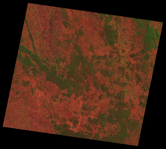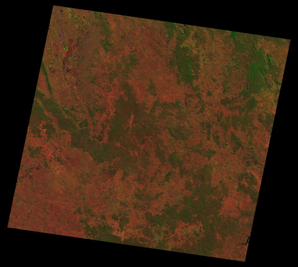 Monto Landsat SceneWRS path/row: 91/77-78 Images are colour-mapped to enhance the contrast of water bodies (Shortwave→Red, Near-infrared→Green, Green→Blue) Copyright Commonwealth of Australia - Geoscience Australia. Imagery post-processed by DETSI. This page should be cited as: Department of Environment, Science and Innovation, Queensland (2013) Monto Landsat Scene, WetlandInfo website, accessed 8 May 2025. Available at: https://wetlandinfo.des.qld.gov.au/wetlands/resources/tools/hydro-climate/scene/mont/ |