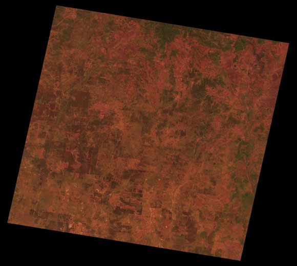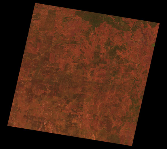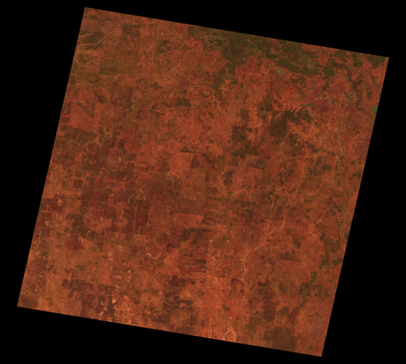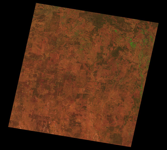 Morven Landsat SceneWRS path/row: 93/78-79 Images are colour-mapped to enhance the contrast of water bodies (Shortwave→Red, Near-infrared→Green, Green→Blue) Copyright Commonwealth of Australia - Geoscience Australia. Imagery post-processed by DETSI. This page should be cited as: Department of Environment, Science and Innovation, Queensland (2013) Morven Landsat Scene, WetlandInfo website, accessed 8 May 2025. Available at: https://wetlandinfo.des.qld.gov.au/wetlands/resources/tools/hydro-climate/scene/morv/ |