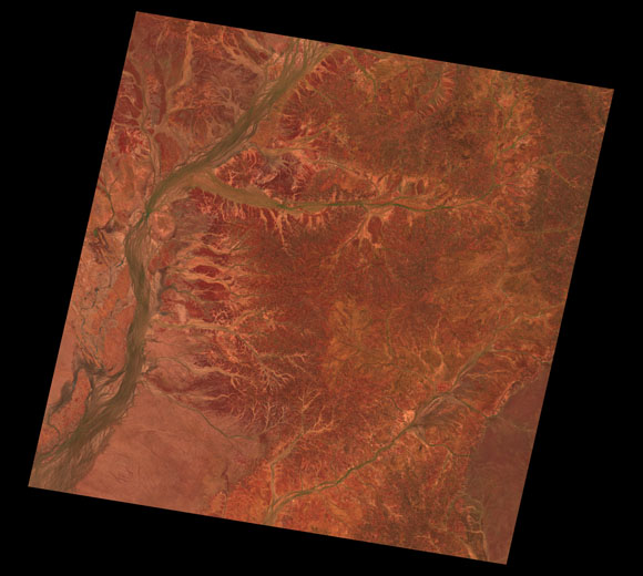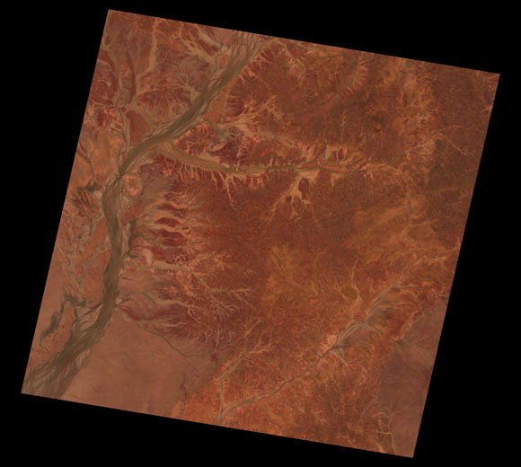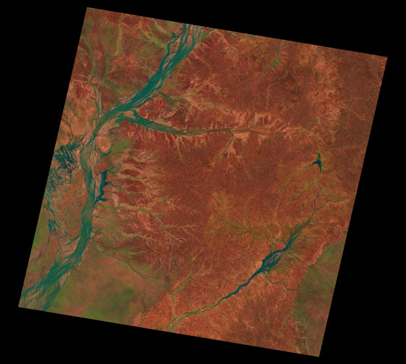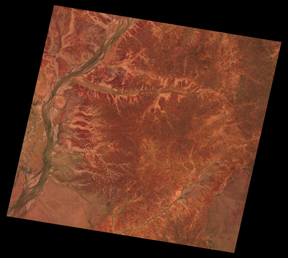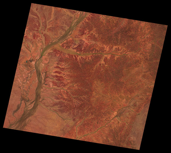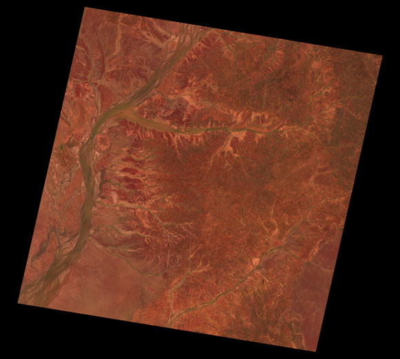 Mt Dot Landsat SceneImages are colour-mapped to enhance the contrast of water bodies (Shortwave→Red, Near-infrared→Green, Green→Blue) Copyright Commonwealth of Australia - Geoscience Australia. Imagery post-processed by DETSI. This page should be cited as: Department of Environment, Science and Innovation, Queensland (2013) Mt Dot Landsat Scene, WetlandInfo website, accessed 8 May 2025. Available at: https://wetlandinfo.des.qld.gov.au/wetlands/resources/tools/hydro-climate/scene/mtdo/ |