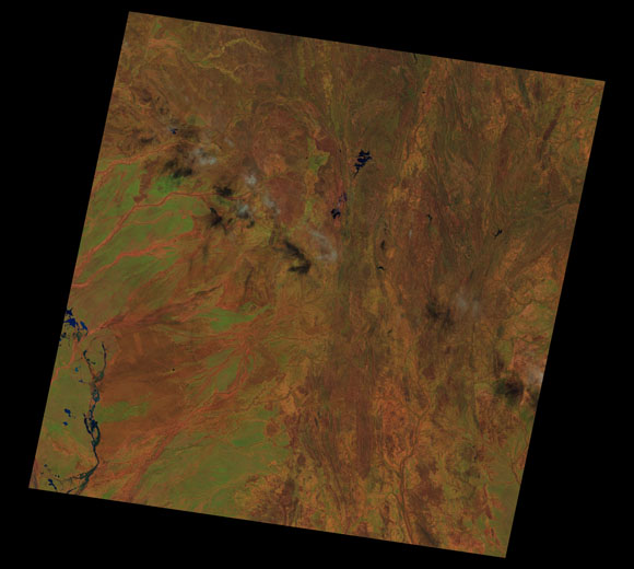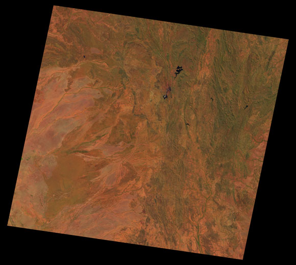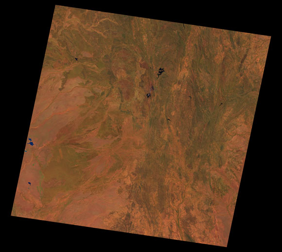 Mt Isa Landsat SceneImages are colour-mapped to enhance the contrast of water bodies (Shortwave→Red, Near-infrared→Green, Green→Blue) Copyright Commonwealth of Australia - Geoscience Australia. Imagery post-processed by DETSI. This page should be cited as: Department of Environment, Science and Innovation, Queensland (2013) Mt Isa Landsat Scene, WetlandInfo website, accessed 8 May 2025. Available at: https://wetlandinfo.des.qld.gov.au/wetlands/resources/tools/hydro-climate/scene/mtis/ |