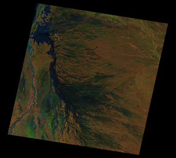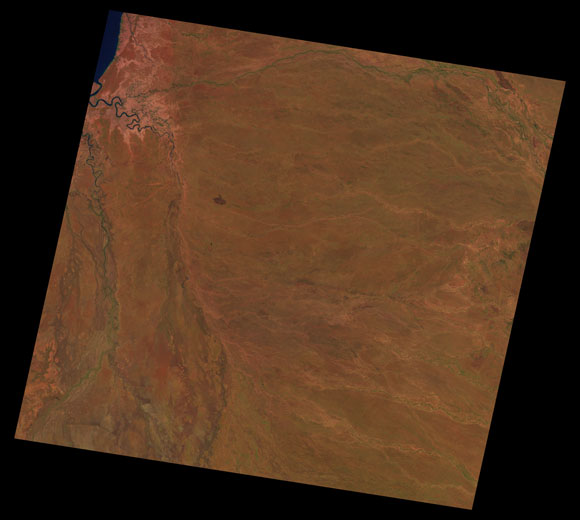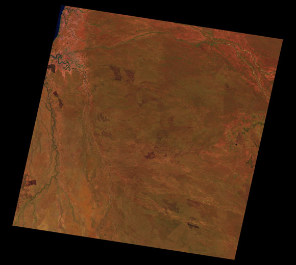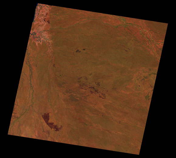 Normanton Landsat SceneWRS path/row: 98/72-73 Images are colour-mapped to enhance the contrast of water bodies (Shortwave→Red, Near-infrared→Green, Green→Blue) Copyright Commonwealth of Australia - Geoscience Australia. Imagery post-processed by DETSI. This page should be cited as: Department of Environment, Science and Innovation, Queensland (2013) Normanton Landsat Scene, WetlandInfo website, accessed 8 May 2025. Available at: https://wetlandinfo.des.qld.gov.au/wetlands/resources/tools/hydro-climate/scene/norm/ |
