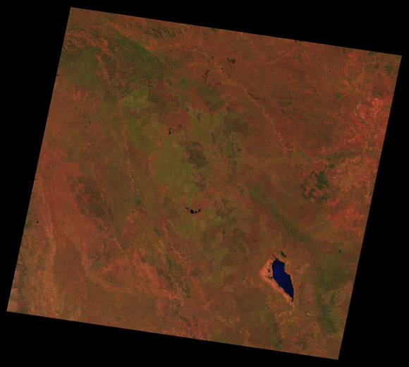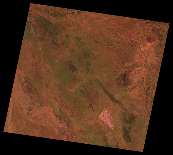 Pentland Landsat SceneWRS path/row: 95/74-75 Images are colour-mapped to enhance the contrast of water bodies (Shortwave→Red, Near-infrared→Green, Green→Blue) Copyright Commonwealth of Australia - Geoscience Australia. Imagery post-processed by DETSI. This page should be cited as: Department of Environment, Science and Innovation, Queensland (2013) Pentland Landsat Scene, WetlandInfo website, accessed 8 May 2025. Available at: https://wetlandinfo.des.qld.gov.au/wetlands/resources/tools/hydro-climate/scene/pent/ |