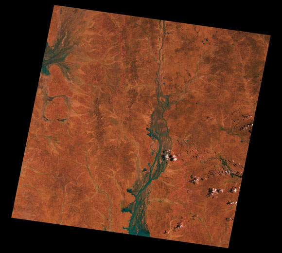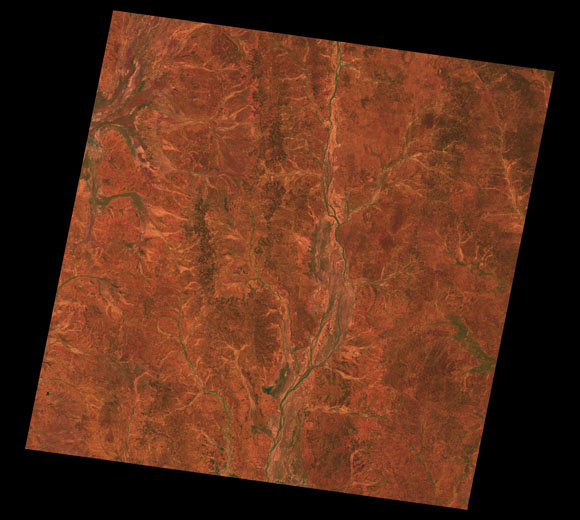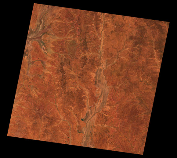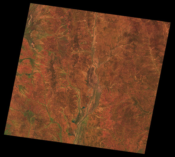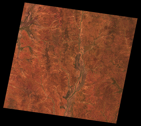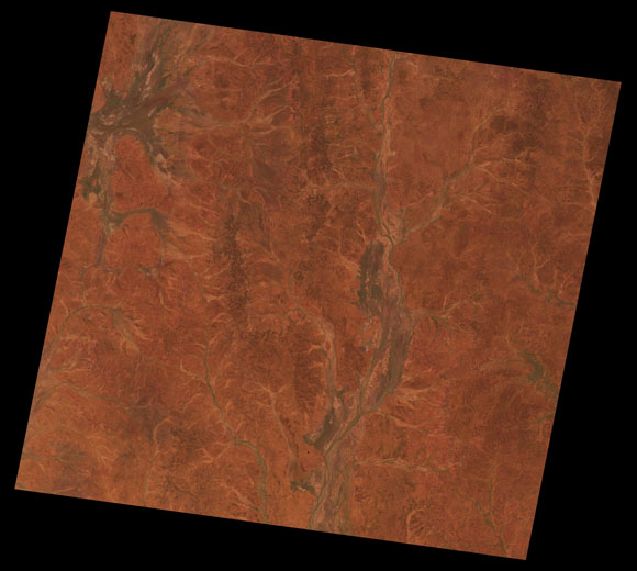 Quilpie Landsat SceneImages are colour-mapped to enhance the contrast of water bodies (Shortwave→Red, Near-infrared→Green, Green→Blue) Copyright Commonwealth of Australia - Geoscience Australia. Imagery post-processed by DETSI. This page should be cited as: Department of Environment, Science and Innovation, Queensland (2013) Quilpie Landsat Scene, WetlandInfo website, accessed 8 May 2025. Available at: https://wetlandinfo.des.qld.gov.au/wetlands/resources/tools/hydro-climate/scene/quil/ |