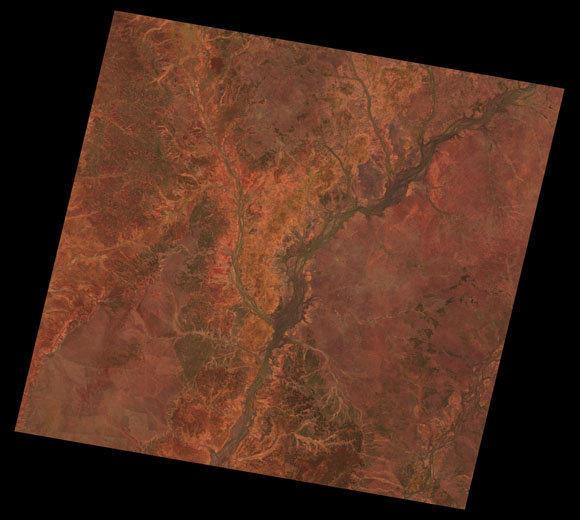 Stonehenge Landsat SceneWRS path/row: 96/76-77 Images are colour-mapped to enhance the contrast of water bodies (Shortwave→Red, Near-infrared→Green, Green→Blue) Copyright Commonwealth of Australia - Geoscience Australia. Imagery post-processed by DETSI. This page should be cited as: Department of Environment, Science and Innovation, Queensland (2013) Stonehenge Landsat Scene, WetlandInfo website, accessed 8 May 2025. Available at: https://wetlandinfo.des.qld.gov.au/wetlands/resources/tools/hydro-climate/scene/ston/ |