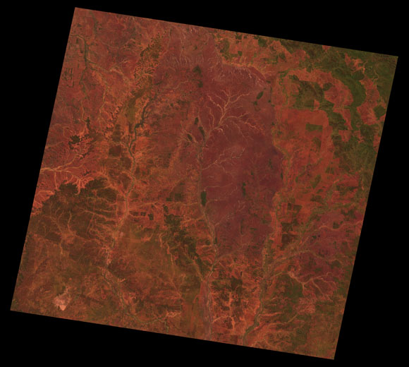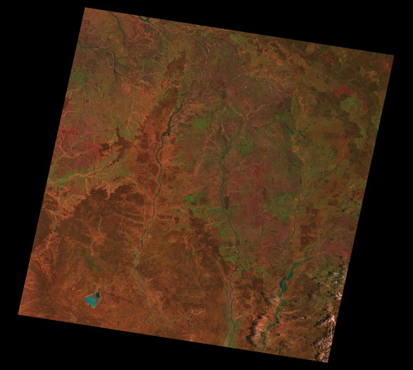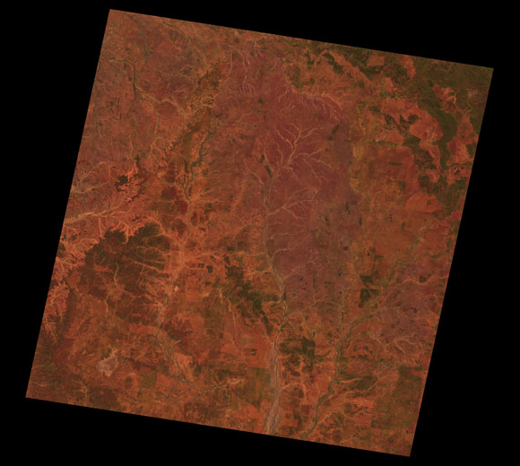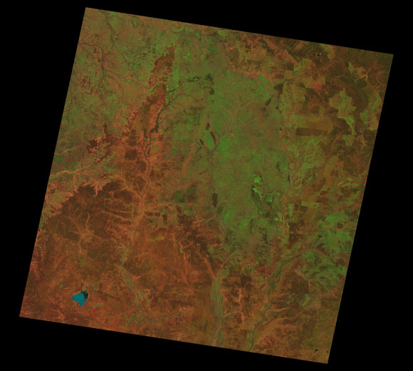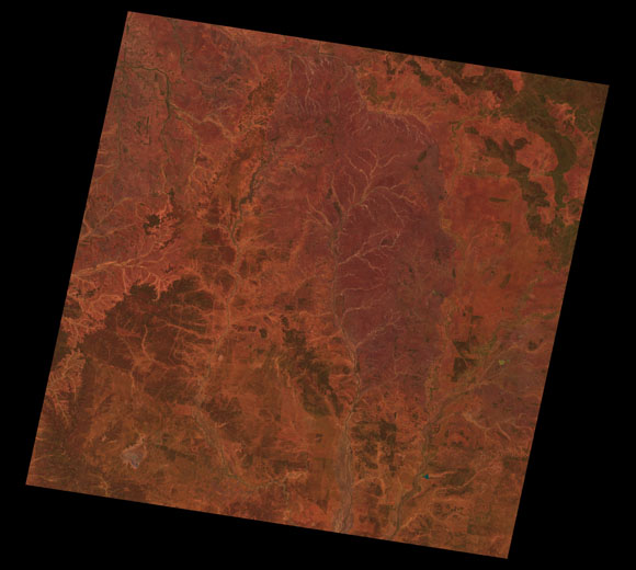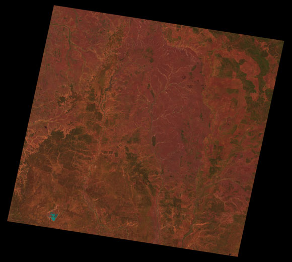 Tambo Landsat SceneImages are colour-mapped to enhance the contrast of water bodies (Shortwave→Red, Near-infrared→Green, Green→Blue) Copyright Commonwealth of Australia - Geoscience Australia. Imagery post-processed by DETSI. This page should be cited as: Department of Environment, Science and Innovation, Queensland (2013) Tambo Landsat Scene, WetlandInfo website, accessed 8 May 2025. Available at: https://wetlandinfo.des.qld.gov.au/wetlands/resources/tools/hydro-climate/scene/tamb/ |